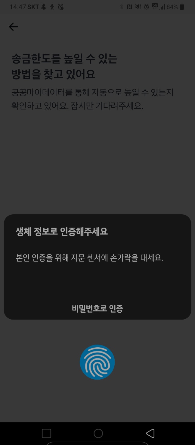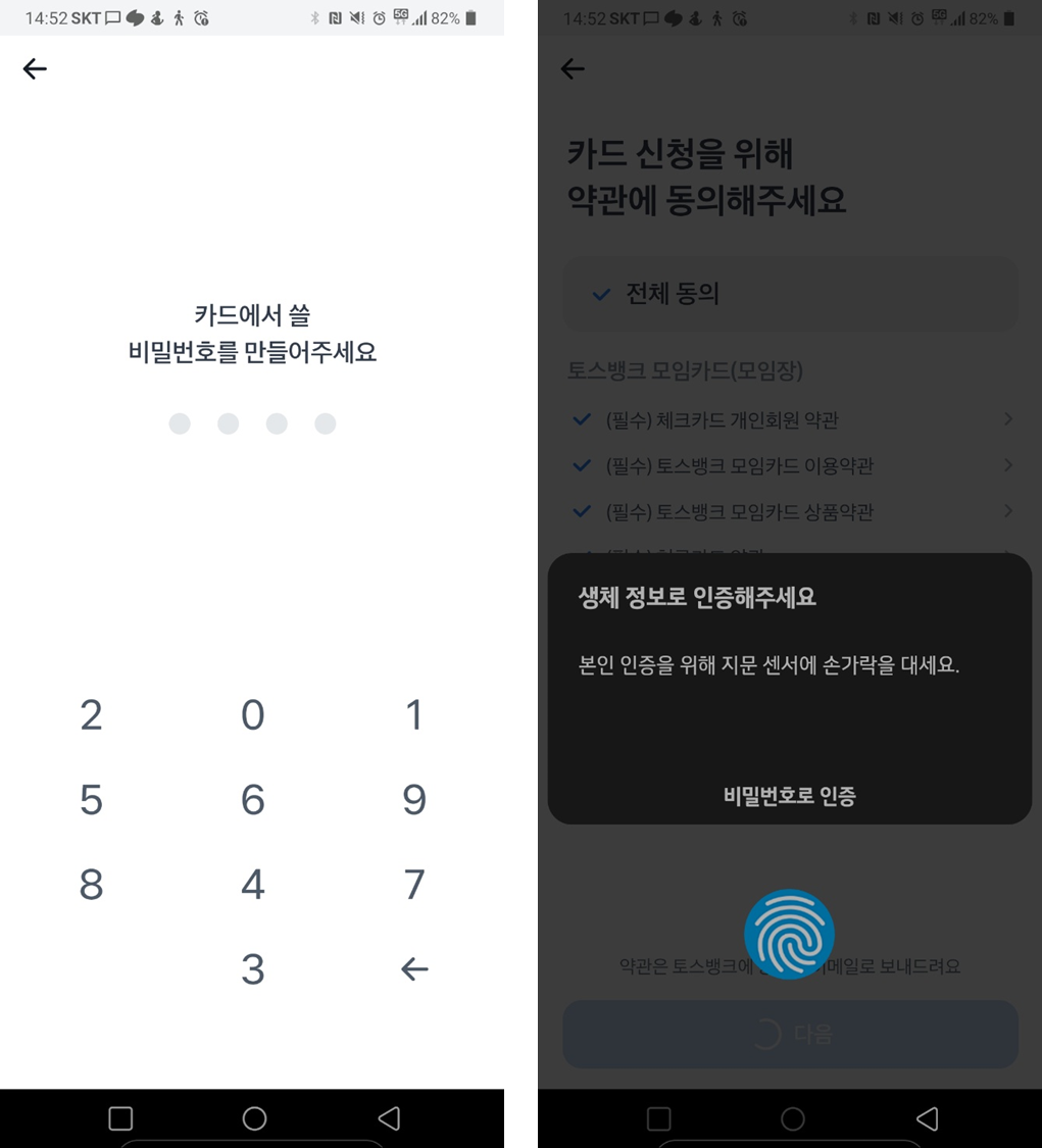 체크카드에서 사용할 비밀번호를 설정하고 지문인증의 절차를 또 거칩니다.