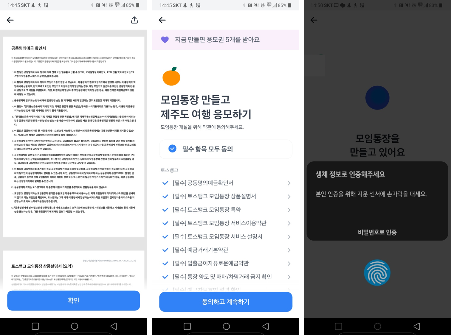 4. 토스뱅크 모임통장 관련 필수서류 열람 및 동의하기